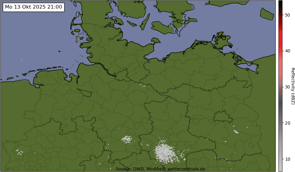 Hoch/Zwischenhoch leicht abschwächend, 12-24h Vorhersage: ztw. windig (gleichbleibend), verbreitet leichte(r) Regen möglich [§], Trend -> unverändert