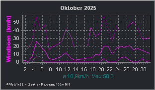 3,8 °CWind: 22,4 km/h (4 Bft) Böen: 22,4 km/h (4 Bft) Solar: 0 W/m² Windlast: 2,36 kp/m² (Böen) ThetaE: 18,0 °C UV-I: 0,0 zu den Wetter-Warnungen |