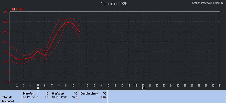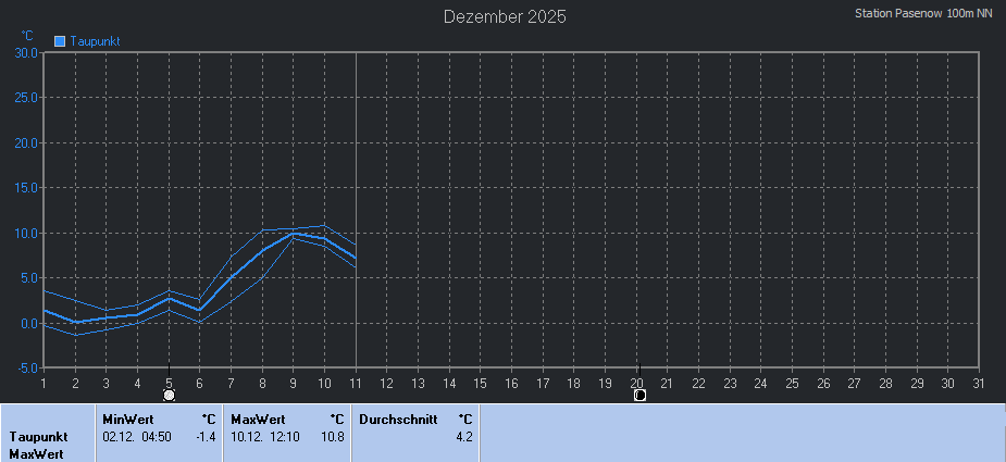 mittlere Tagestemperatur max. an einem 11.12. von 2010-2025 |