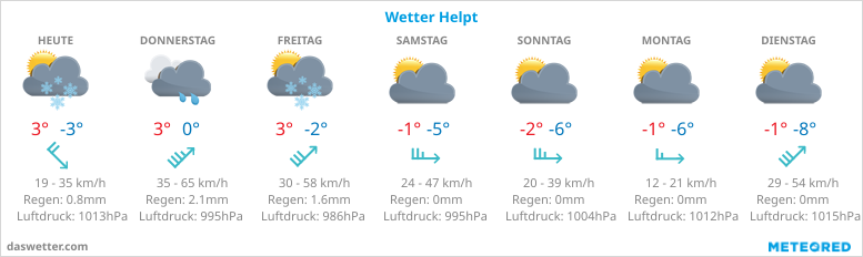 sich aufbauendes Hoch/Zwischenhoch, 12-24h Vorhersage: windig (gleichbleibend), überwiegend trocken - nur vereinzelt etwas Schneefall möglich [!], sich stabilisierende Wetterlage, Trend -> Wetterberuhigung | z.Z. trocken, vereinz. sonnige Abschnitte | ||||||||||||||||