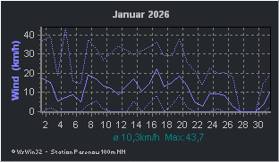 7,0 °CWind: 13,0 km/h (3 Bft) Böen: 14,1 km/h (3 Bft) Solar: 0 W/m² Windlast: 0,86 kp/m² (Böen) ThetaE: 28,0 °C UV-I: 0,0 zu den Wetter-Warnungen |