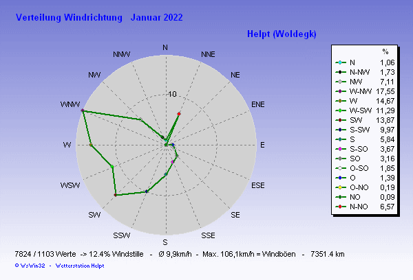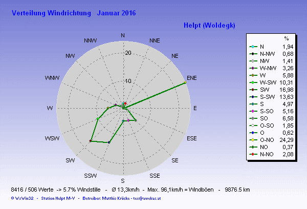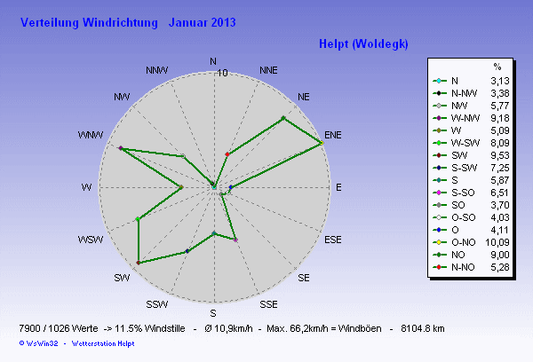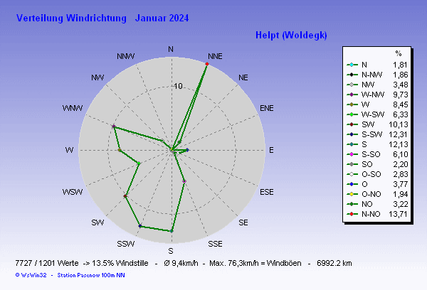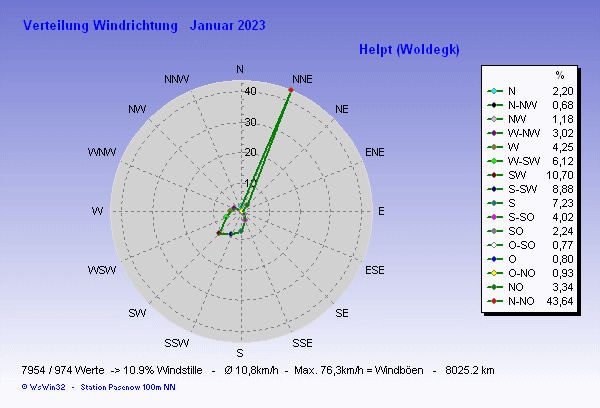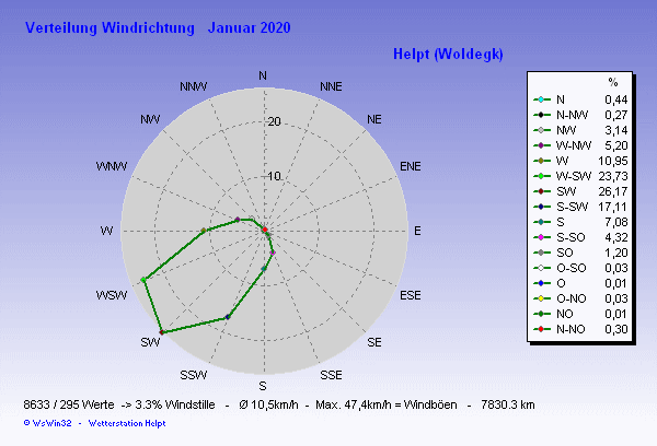 Windverteilung (Zeit) Diagramm Januar